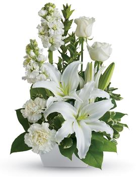 Send your warmest thoughts and show how much you care with an elegant arrangement of white flowers. This lovely arrangement compassionately conveys your sentiments.